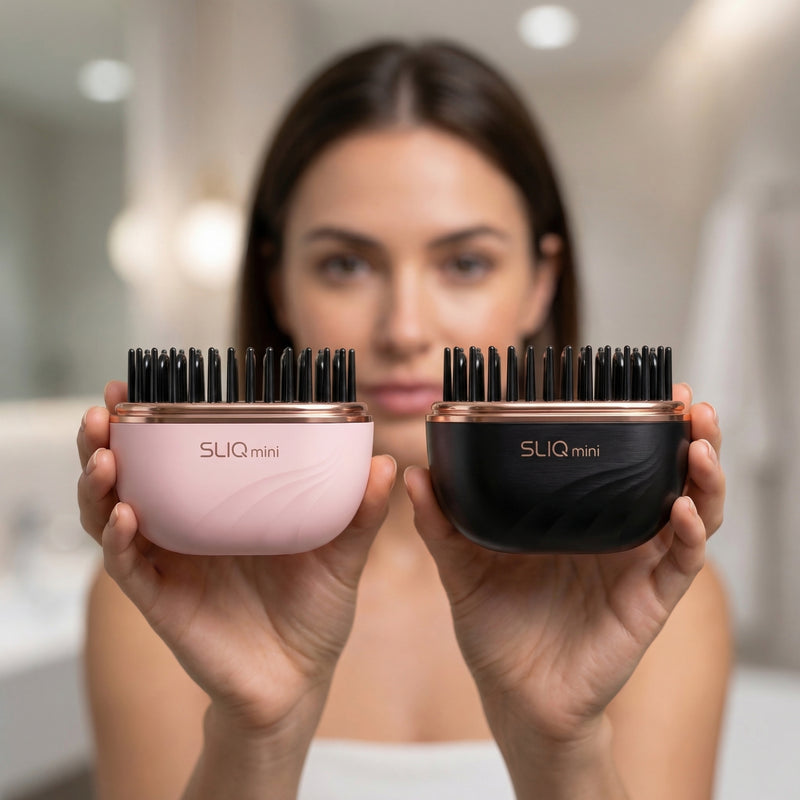 SLIQ Mini™ is a cordless hair straightening brush designed for quick touch-ups on the go.